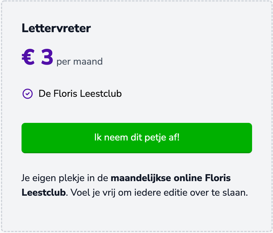 Daarnaast is dit de manier om mijn video’s, boeken, nieuwsbrieven en andere projecten te ondersteunen. Ook voor mensen die stiekem zelf niet lezen.